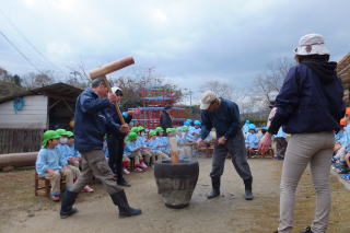 | 2013/12/20 今日 幼稚園では餅つきをしました。 あいにく寒さが厳しい天気でしたが、保護者の方にもお手伝いをお願いして、おいしいお餅ができました。 時折 小雪混じりの雨が降りましたが、子ども達の喜ぶ姿が見られました。 つきたてのお餅はおいしく、時間をかけて食べる子どももいました。 いよいよ連休明けは終業式です。 子ども達が元気に年末を迎えられることをうれしく思います。 ![]() 「ぺったん ぺったん」 みんなで餅つきの応援 ![]() 年長児達も 餅つきに挑戦しました。 「おいしかったね。」 |