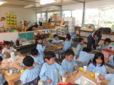 2014/11/12 昼食後雨が降り出しました。 午前中には、天気もよくて年長児達は、駅見学に出かけました。 幼稚園バスで松橋駅まで行き、ほとんどの子ども達が未経験の切符も買いました。 目的地は、八代駅でしたが、みんなは、ワクワク、ドキドキしながらの電車乗車体験をしました。 現地で記念写真に納まり、駅の周りの商店街見学もしました。 昼過ぎに帰園しましたが、喜んでバスから降りてきました。 又 園内では、これからの単元に向けて、部屋の移動がありました。 みんなで、力を合わせて、自分たちの持ち物を運んだり、部屋の中を片付けたりして手伝っていました。 昼食は、みんなできれいにした部屋で、うれしそうに食事ができました。 ![]() |