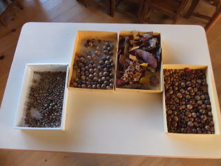 2014/11/10 朝から焼き芋の準備を始めました。ミツバチ広場のまっくろくろすけの家から籾殻を運んだり、枯れ枝などを園庭に運び込み、籾山に火をつけました。 昼食後には、籾山は黒く焼けて、火加減もほどよく焼き芋に適した状況になったので、早速 サツマイモを焼く事になりました。園庭には、おいしい焼き芋の香りが漂っていました。 幼稚園の木々が少しずつ色付き始めました。 子どもたちは、赤や黄色、橙色などきれいな落ち葉を集めては、花束のようにまとめ友達と見せ合ったり、元気に運動場でサッカーや鬼ごっこ、フープ等で遊ぶ姿が見られました。 ![]() 籾山作り 籾山が焼け始めました。 登り棒も楽しい ![]() おいしいよ 甘くておいしいね みんなで冬支度 |