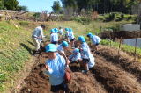 2014/11/ 5 初夏に植え付けをしたサツマイモの収穫をしました。 昨日までにすっかり芋の蔓は取り除かれ、今日は、いよいよ芋ほりでした。 子どもたちは、芋ほりの前のお話や掛け声で気持ちを盛り上げ、勇んで芋畑へと向かいました。堅い土は先生たちにショベルで掘り起こしてもらい、土の中から一つずつ芋を掘り出しました。 土の中から、次々に紅色の芋が出てくると、みんなは、大喜びで畑の外へと運び出しました。 収穫したお芋は、早速 園庭で蒸かして、昼食後みんなで食べました。 又 園舎工事の方たちにも、食べていたたくことが出来、皆さんからも喜ばれました。 ![]() 始まりの会 大きな芋が掘れました。 今年の収穫 ![]() 園庭でお芋を食べました。 昼食はみんなで食べました。 年長組のお芋やさん |