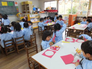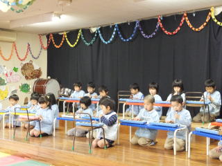 | 2014/ 2/ 6 冷たい雨が降る寒い天気でした。 昨日から、またまた冬に逆戻りした様です。 幸い 子ども達にインフルエンザでの欠席は少なく、元気に登園が出来ていることをうれしく思っています。 今日は、「みんなの集まり」がありました。 音楽会に向けてのお話や、ソチオリンピックの話題などを子ども達に伝えました。 又 アップルタイム(延長保育)で毎日頑張った人たちの表彰があったりと、楽しい集いとなりました。 各クラスでは、遊戯室を使っての合奏の練習が始まりました。 お互いに時間を調整しながら頑張る様子も見られます。 一方 クラスでは、絵本の読み聞かせや製作活動など、季節に応じての保育の様子も見られます。 ![]() 年長児達の合奏練習 年少組での製作活動 |