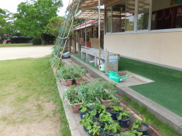 2014/ 6/14 やっと ホームページが公開できます。 大変ご迷惑をおかけしました。 4月からの、機器の入れ替え(XPから8)の為、変更手続きに手間取ってしまいました。 これからは今までのように、できる限りお知らせしていきたいと思います。宜しくお願い致します。 今日は、後援会役員会で、保護者役員の方達には、早朝から来園いただきありがとうございました。 今後の園内行事等では、大変お世話になりますが、宜しくお願い致します。 又、先週のグリーンカーテンの作業には、お父さん、お母さんの協力で、立派なカーテンができました。子ども達も苗が大きく育つことを楽しみに、毎日の水やりにも励んでいます。 今日は、朝顔の花も咲きました。 ゴーヤやヘチマなど花をつけ、実になることを楽しみにしたいと思います。ありがとうございました。 |