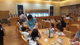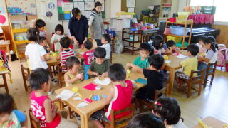 2014/ 8/ 6 2台のバスに分かれて美術館へ行きました。 今日は蒸し暑い天気でしたが、バスの中も美術館も冷房が入り涼しく過ごせました。 毎年 この時期に宇城市では、絵本の原画展が開かれ、本園では、サマースクール企画に取り組んでいます。 美術館では、子どもたちも壁面に展示された絵本より大きな原画を、真剣に静かに観賞していました。 また 園内では、ビーズを使った製作や和紙つくり等にも取り組んでいました。 ![]() ![]() |