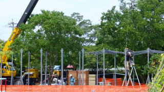 2014/ 8/ 7 今日から仮設園舎の組立て工事が始まりました。 大型のクレーン車が運動場に入り、重そうな鉄板も楽々と吊り上げていました。 その様子を遠くから見てた子どもたちは、日頃なかなか目にすることもない光景に大喜びでした。 しかし 安全優先 早々に部屋に戻り、日常の遊びとなりました。 大型の台風が近づいています。 台風情報には気を付けて、被害がないことを願っています。 ![]() サマースクールの様子 園舎建設の様子 |