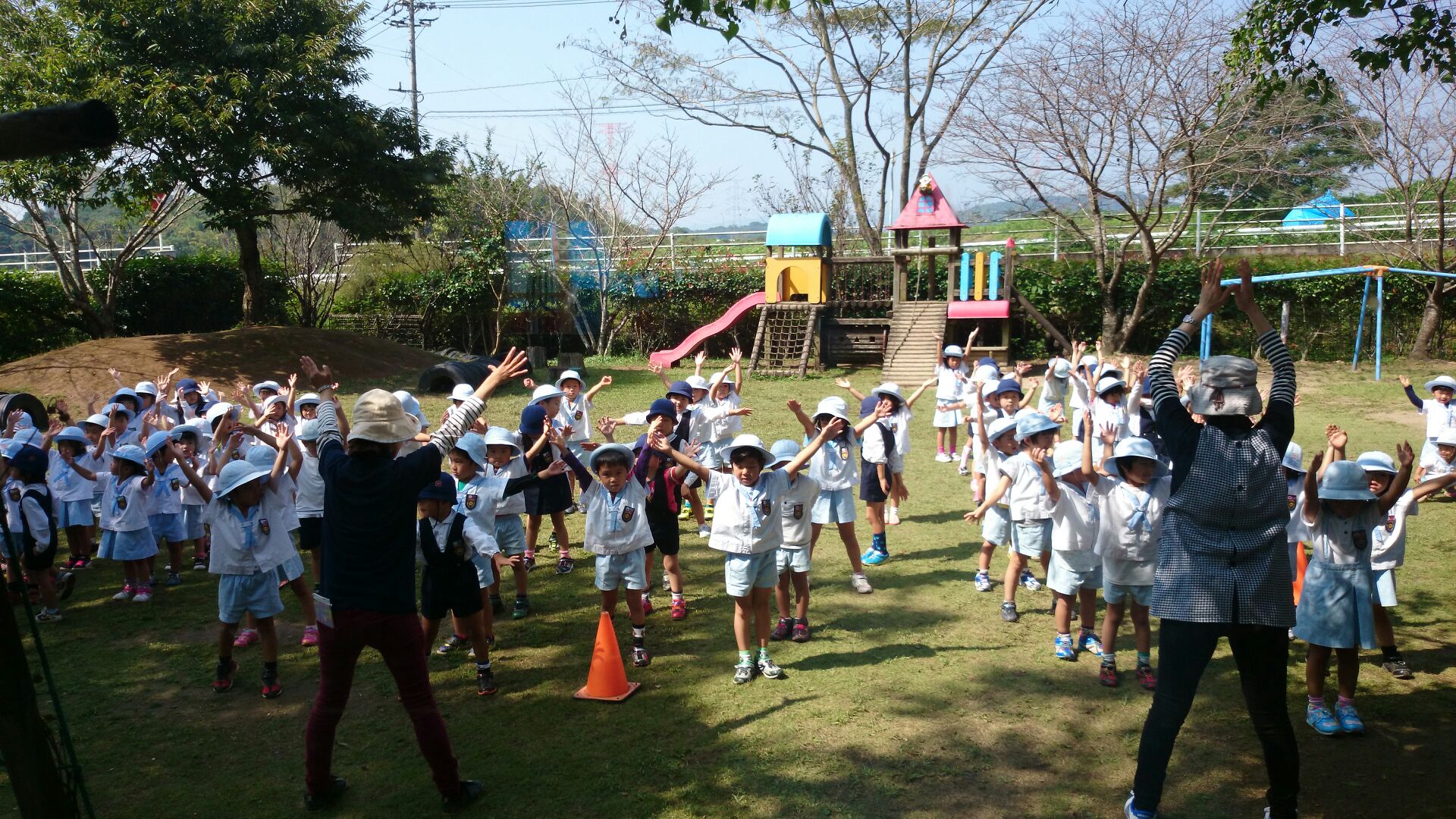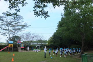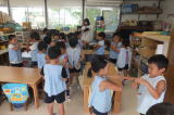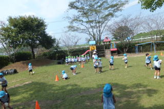 2014/ 9/17 仮設園舎で火災の避難訓練をしました。 今までの非常ベルとは違う音に、少し戸惑う子どももいましたが、先生達の誘導でスムーズに運動場へ避難ができました。 運動場では、年中児達が玉入れの練習をする様子が見られました。 先日行われた祖父母来園日の際、2対1で祖父母の方達に負けてしまい、次回の対戦では是非とも勝ちたいと、練習を始めました。 又 年少組やプレクラスのみんなも、木陰を探し、かけっこやお遊戯の練習をする様子も見られました。 ![]() |