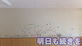 2014/ 9/ 3 朝夕は、涼しく感じられるようになりましたが、子どもたちが登園を完了するころには、日差しは強く、蒸し暑い天気となりました。 仮設園舎の生活に慣れ始めた子どもたちは、園舎を挟んで西側の運動場と東の園庭で、一学期までの生活と同じような、虫探しや草花集め、砂遊びなど、元気に過ごす姿が見られました。 また 昨日は、取り壊すことになっている園舎の保育室の壁一面に、今迄の感謝を込めて、絵を描き、別れをしました。 部屋の中は、机や椅子、ロッカー等が取り払われ、保育室は、寂しく見えていましたが、子どもたちのお蔭で楽しい空間に変わりました。 みんな 本当にありがとう。 きっと 園舎もよろこんでいる事と思います。 ![]() ![]() |