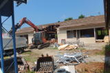 2014/ 9/16 朝夕には、秋風が感じられるようになりました。今朝は、運動場にもさわやかな秋の風が吹き、草むらからは、コオロギのかわいい声が聞こえていました。 園舎の解体も順調に進み、子どもたちがいない昨日には、屋根瓦がはがされていました。今日は、大型の重機が入り、まるで怪獣映画のシーンのように、園舎を壊し始めました。子どもたちも、「すごいね。強いね。」と言いながら、その様子をながめていました。 運動場では、少しずつですが、運動会へ向けて、クラスで取り組む様子が見られました。 涼しい午前中に、体操を済ませて、かけっこやゲームをしました。 ![]() ガラちゃんとかけっこ 栗の実が実りました どんぐり館のスイカ ![]() 年長組の遊びの様子 プレクラス 解体作業の様子 |