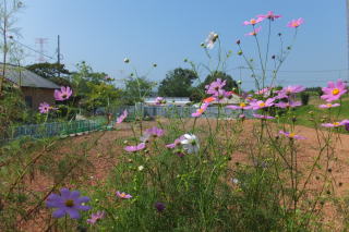 2014/ 9/29 さわやかな秋晴れの朝になりました。 子ども達は、登園を完了すると運動場に集まり、かけっこを始めました。 昨日は、各小学校の運動会があり、参加したり見学したりして刺激を受けたのでしょう。 又 毎日の体操も、運動会へ向けて少しずつ気持ちを高めながら、みんなで行いました。 園舎の解体工事はすべて完了し、広々とした空き地となりました。 近々、本格的な本体工事が始まります。 どのような新しい園舎ができるのか、今から楽しみです。みんなで 待ちたいと思います。 ![]() コスモスの花が咲きました。 どんぐり館から見た西園舎と仮設園舎 ![]() 西園舎から見たどんぐり館 運動場で体操 |