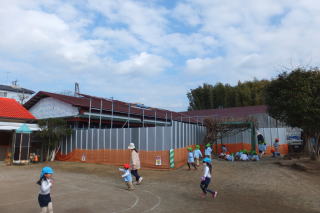 2015/ 1/ 9 あけましておめでとうございます 今年も子どもたちにとって良い一年になるよう 職員一同 幼児教育に専念したいと思います。 今日は、3学期の始業式を行いました。 数名の子どもが風邪等で欠席いたしましたが、ほぼ全員が元気に新学期を迎えることが出来て、うれしく思いました。今学期は、寒さが厳しく保育週数も少ない学期になりますが、進級、進学を控えての大事な時期でもあります。みんなで、目標ももって楽しく元気に過ごしていきたいと思います。 園舎工事も、屋根工事や壁工事等、順調に進められています。 ![]() |