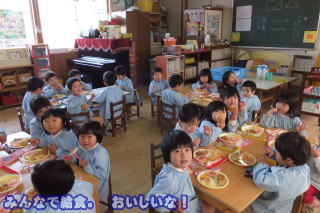 2015/ 1/23 寒い日が続いています。 今日からは、学級閉鎖だった年中組の子ども達も登園を開始し、元気な声が聞かれました。 インフルエンザの子どもの数も少なくなり、普段の活気が返ってきました。 又 今日は、「みんなデー」だったので、ミルクレストランも開き、子ども達は、それぞれにミルク切符を持って、ミルクレストランへ出かけ、美味しくミルクを飲みました。給食も全員が揃って同じ食事をとることになりました。 週明けには、全員が欠席せずに登園ができるように、土・日曜日の休日には十分に休養をとって欲しいと思います。 ![]() |