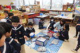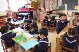 2015/ 1/30 1月も最終日になりました。あいにく雨天となり、体育遊びは室内で行うこととなりました。仮設園舎での体育遊びの内容は、限られてはいますが、身体を動かす色々な遊びで、寒さも吹き飛ばし、汗を流す子どもも見られました。 音楽遊びや節分の鬼のお面作りなど、週末の持ち物の始末も含め、充実した時間を過ごしました。又 西園舎の保育室の片付けも子ども達も一緒になって手伝い、音楽会への備えも出来ました。 ![]() ![]() |