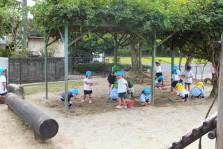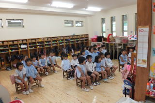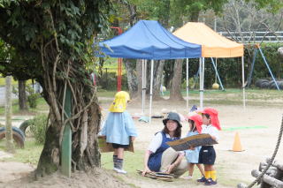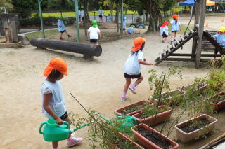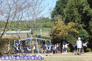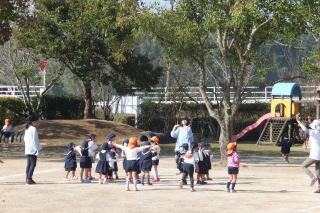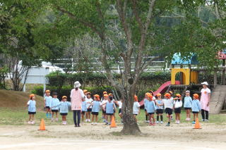 2015/10/ 5 涼しい朝でした。今年も幼稚園の近くまで「百舌」がやってきました。 秋を告げているように、独特の鳴き声が静かな朝の幼稚園に響き渡っていました。幼稚園のクルミの実も今年はたくさん実り、毎朝道ばたに落ちています。 いよいよ実りの秋です。 稲の刈り取り作業も近日中には幼稚園の近くでも見られることでしょう。 昨日の小学校の運動会に参加した子ども達もいて、幼稚園でも、登園すると運動場でかけっこを楽しむ姿も見られました。各クラスでは、体操の後、遊戯や組み体操等練習に取組む様子が見られました。幸い 今日はとても涼しく、半袖では寒くも感じられ、戸外遊びには適した気候となりました。 ![]() 秋の歌をうたいました。 ![]() 元気にかけっこ |