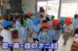 2015/ 2/ 3 今日は節分。 朝から豆まきの準備をしました。園庭に釜戸を準備して家庭から持ち寄った生大豆を大きな鉄鍋で煎ることにことにしました。 薪の燃える音や煙の臭い。又 大豆の香ばしい香りなど、みんなで楽しい一時を過ごしました。 前日までに完成した鬼のお面を被って、午後からは、豆まきをしました。「鬼は外 福は内」大きな掛け声で、思いきり豆をまいて鬼を追い払い、各クラスで豆まきの記念写真も撮りました。
