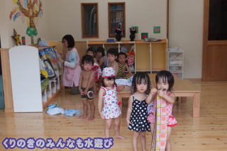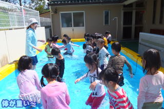 2015/ 9/ 8 台風の接近での影響か 少し風が強く感じられました。 しかし 吹く風は涼しく 子ども達は、体操や各クラスでの遊び等で、運動場を所狭しと駆け回っていました。 年長児達は、恒例となっている着衣泳をしました。 体操等で汗を流した後に水着に着替え、その上にズボンやシャツを着てプールに入りました。 いくらかプールの水は冷たく感じられる様になりましたが、みんなは楽しく水に入ることが出来ました。いつもとは違う水遊びに、衣服が重く感じたりまとわりつく感じもつかめたようで、水の怖さが少しは、体験出来たと思います。 楽しい水遊びも危ないことに気づき、これからの生活に役立てばと思います。 10日は祖父母来園日です。子ども達は、プレゼントを作ったりいっしょに遊べることを楽しみに待っています。 多くの方の参加をお待ちしております。 ※平成28年度の園児募集が始まります。 9月14日から入園募集要項の配布が始まります。 ![]() ![]() |