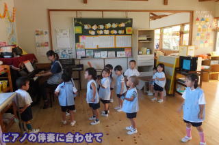 2015/ 9/29 昨日に続いて今日も大変蒸し暑い天気となりました。 子ども達は、時より吹く秋風を感じながら、元気いっぱいに運動場で過ごしていました。 今度の日曜日には、近隣の小学校でも運動会が行われ、来春入学する年長児の中には、案内状も頂いています。 日曜日に小学校の運動会へ行くことを、うれしそうに話してくれる子どももいます。晴天に恵まれることを祈っています。 幼稚園でも、今週から少しずつ運動会の練習も始まりました。暑いので、木陰や午前中の涼しい時間帯を選んで行っていますが、まだまだ残暑が厳しく、子ども達の体調には配慮しながら行っていきます。 各クラスのお遊戯やかけっこなど、子ども達からは、楽しそうに頑張る様子が見られました。 又 、連日 次年度入園希望予定の方達の来園も続いています。 大切な幼児期の集団の場です。しっかりと親の目で確かめ、入園先を見極めて頂きたいと思っています。 ![]() ![]() |