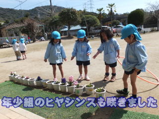 2016.03.14 野原の上から、ヒバリのさえずりが聞こえます。いよいよ 幼稚園の周りにも春がやって来たようです。 クワガタ広場には、早々と桜が開花しました。 開花の標準木としている運動場の桜は、まだ 蕾のままです。 ハクモクレン、すみれ等春の花も一斉に咲き始めました。 年長児達は、幼稚園での最後の週となり、ワクワクしている様子が窺えます。 今日は、先週まで休みだった友達と一緒に卒園式の練習やクラスでのやり残し等に取組む様子が見られます。又 それぞれの学年の子ども達も、暖かくなった運動場で元気に身体を動かし、遊ぶ様子が見られました。 ![]() ![]() |