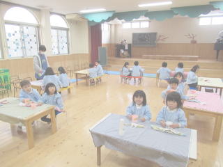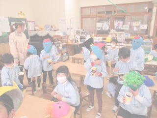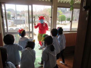 2022.2. 3 いよいよ2月です。 日没時間も少し遅くなり、春もすぐそこまでやって来ています。 今日は節分です。幼稚園では、朝から生の大豆を大きな鍋で煎りました。豆の香ばしい香りが園内に漂い子ども達も口々に「良い匂いだね。」と友達同士で会話している場面も見られました。オニのお面もそれぞれに出来上がり、いよいよ豆まきの開始です。 どこからか赤オニ達が現れ、各クラスを覗き込むと、みんなは一斉に豆をオニめがけて投げつけました。「オニは外 オニは外」 子どもの中には泣き出した子もいましたが、無事にオニは裏山へと逃げていきました。 今年も無事にオニ退治が出来て、いよいよ 明日から暖かい春がやってくることでしょう。 みんな揃って大きくなる春を待ち望んでいます。 ![]() |