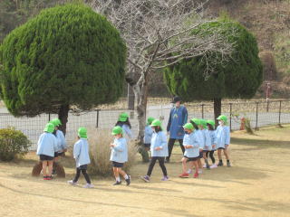 2022. 2. 4 今日は立春。暦の上では今日から春です。 春を告げるかのように幼稚園の裏山ではウグイスの初音を聞く事ができました。 梅の花も満開になり、しだれ梅の桃色の蕾もふくらんで来ました。又 メジロ等の野鳥の声も一段と賑やかになったように思えます。 昨日 節分でオニを追い払い、まだ寒さは残りますが春になったようです。 暖かな陽差しの中、子ども達は体操の後、それぞれの学年の遊び 縄跳びや鉄棒等のアスレチック遊び、又 芽が出始めた植木鉢やプランターで栽培している球根に水をやる様子が見られました。 ![]() |