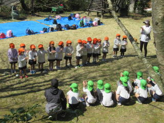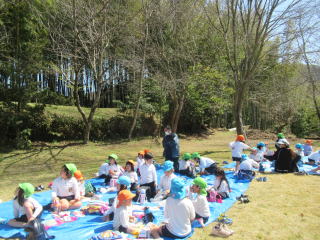 2023. 3. 6 今日は啓蟄。 初夏の暖かさとなりました。 雲一つ無い晴天に恵まれ、今日はお別れ遠足がありました。 子ども達もうれしそうに登園してきました。 いつものようにクワガタ広場まで全園児で出かけることにして、途中 草花や梅の花を探しながら歩きました。 梅や早咲きのサクラ、タンポポなど花を見つけるとうれしそうに教え合う姿が見られ、とても楽しい遠足になりました。広場に着くとそれぞれのクラスから年長組のみんなへ歌のプレゼントや頑張って作った写真入れやペン立てを一人一人に手渡していました。 お弁当もシートの上で美味しく食べました。 ![]() |