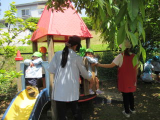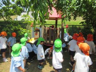 2023. 5.16 今日は「梅の実」の収穫をしました。 年長児達はミツバチ広場の梅の実を穫りに出かけ、沢山実った梅を収穫しました。 梅の実は、夏のお泊り保育の際に梅干しとして食べる予定です。今年の梅干しの出来具合が楽しみです。 沢山収穫した梅の実は、年長児や年中児たちが分け合って家庭に持ち帰りました。 もちろん 幼稚園で作る梅干しの分は別に確保してあります。 又 他のクラスの子ども達もミツバチ広場へ出かけ、大きく育ったチューリップツリー木陰で思い思いに遊んだり、きれいに咲いた花を見つけ、楽しい一時を過ごしました。 ![]() ![]() |