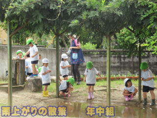 | 2024. 6.21 梅雨に入り連日雨が続いています。 今日は、昨日からの雨も止み運動場での体育遊びが出来ました。 叉 みんなが植えた芋の苗も雨のお陰で成長が見られ、年長児達は苗の様子を観察に出かけました。 暫くは雨が続くでしょうが、雨の日ならではの生活を楽しみたいと思います。トマトは、色づき収穫が待たれ、ひまわりの苗もすくすくと伸びていました。 ![]() |