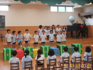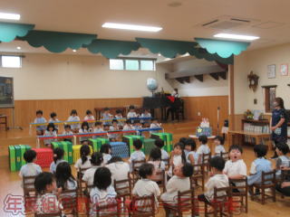 2024. 7. 1 今日から7月に入りました。 7月1日は肥後菊幼稚園の44回目の創立記念日です。 「星の日」と呼んでみんなでお祝いをしました。 今日は、遊戯室に集まり、飾り付けがすんだ部屋で、みんなでお祝いをしました。 それぞれのクラスから歌や鍵盤ハーモニカ奏などの発表があり、楽しい一時を過ごせました。 叉 給食も星の形のハンバーグや星形の野菜だったりと星一色の一日に成りました。 食後は星の日の記念写真撮影があり、叉降園時には、手作りの星形クッキーをお土産に持ち帰りました。 ![]() |