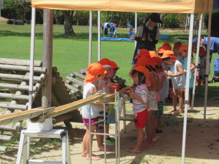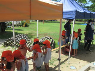 2024. 8.21 毎日 暑い日が続いています。今年は、雨も少なく園内の木々の一部では、枯れかけた木も見られます。 少しは夕立もあればと願っています。 幼稚園では、今日から夏季保育Ⅱが始まりました。 元気に子ども達の登園してくる姿を見ると、なんだか園内も活気づきます。 年長組は、今年はそうめん流しを計画していました。 栄養士やバス運転の先生に手伝ってもらい、そうめん流しをしました。 くわがた広場から竹を切り出し準備を前日から進めていて、今日はスムーズに食べることができました。 子ども達は大喜びで流れてくるそうめんを、上手にはしですくって食べていました。 みんなはおいしそうに、お代わりをしながら夏の味覚を味わっていました。 ![]() |